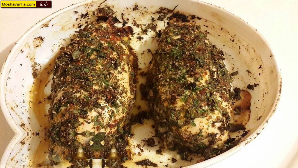 مرغ ۲ تکه خردل ۴ قاشق آویشن ۱ قاشق نعناع خشک ۱ قاشق پاپریکا ۱ قاشق فلفل سیاه ۱ قاشق چای جعفری خیلی کم نعنای تازه خیلی کم نمک ۱ قاشق چای طرز تهیه: در ظرف فر مرغها را قرار داده رویش خردل ریخته به هرطرفش می مالیم جعفری و نعناع را ریز خرد کرده میریزیم. نعناع و آویشن و پاپریکا و نمک را ریخته خو به همه طرفش می مالیم در فر ۱۸۰ درجه از قبل گرم شده بمدت ۲۰ دقیقه قرار می دهیم تا بپزد وقتی سرد شد مرغها را داخل پاکت گذاشته تا یک شب در یخچال بماند تا نرم شود و سپس برش داده و سرد سرو میکنیم