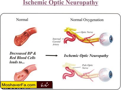 صدمه به عصب بینایی ناشی از نرسیدن خون کافی،و گاهی اوقات بعلت “سکته مغزی” عصب بینایی دچار آسیب می شود. نوروپاتی ایسکمیک نوری از عصب بینایی اغلب در افراد بالای 55 سال رخ می دهد و باعث می شود در عصب بینایی اختلالاتی بوجود بیاید عصب بینایی (به انگلیسی: Optic nerve) دومین اعصاب مغزی است. از دیدگاه بافت شناسی، لایه هشتم شبکیه معادل لایه سلولهای گانگلیون است. لایه سلولهای گانگلیونی، حاوی جسم سلولی گانگلیونی است.آکسون این سلولها که در لایه نهم شبکیه قرار دارند، عصب بینایی یا عصب اپتیک را میسارند. مسیر بینایی سلولهای استوانه و مخروط شبکیه از راه عصبهای دوقطبی به سلولهای گانگلیونی رسیده و پس از آن عصب بینایی شکل گرفته، وارد فضای کرانیکال شده و در تماس با سلا تورسیکا به طرف نواحی فوقانی مغز و یا قسمتهای پایین تر مغز است. یک عصب بینایی حاوی حدود یک میلیون آکسون است. فیبرهای نیمه بینی از هر دو شبکیه، در ناحیه کیاسمای بینایی(Optic chiasma) تقاطع میکنند و به طرف مقابل میروند و به فیبرهای نیمه گیجگاهی(تمپورال) همان طرف میپیوندند و بدین ترتیب، راه بینایی(Optic tract) را در هر طرف ایجاد میکنند. نسبت رشتههای متقاطع به غیرمتقاطع، ۵۳ به ۴۷ بوده و تعداد سلولهای گانگلیونی نیمه بینی(نازال) شبکیه بیشتر است اکثر فیبرهای راه بینایی(حدود ۹۰%) جهت انتقال پیامها به قشر بینایی، ابتدا وارد هسته زانویی خارجی تالاموس میگردند. بقیه فیبرها به بخشهای پایین تر مغز وارد میشوند. قشر بینایی دو ناحیه قشری بینایی وجود دارد که عبارتنداز: قشر بینایی اولیه. این قسمت معادل ناحیه ۱۷ برودمن است که در لوب پس سری(Occipital lobe) مغز قرار دارد. قشر بینایی اولیه، قشر کالکارین نیز نامیده میشود. توانایی دستگاه بینایی برای کشف و تشخیص سازمان فضایی منظره بینایی یعنی کشف شکل اشیاء، درخشندگی قسمتها ی انفرادی آنها، سایه روشن و غیره بستگی به عمل قشر بینایی اولیه دارد برداشتن این ناحیه باعث ازبین رفتن دید خودآگاه در فرد میشود. قشر بینایی ارتباطی(ثانویه). این قسمت مغز معادل نواحی ۱۸ و ۱۹ برودمن بوده که در تشخیص اشیاء و رنگ نقش دارند. انهدام نواحی ۱۸ و ۱۹ برودمن، به طورعموم درک شکل اشیاء، اندازه اشیاء و مفهوم آنها را مشکل میسازد يك فوق تخصص گلوكوم (آب سياه) با اشاره به نقص دانش بشري در پيشگيري از مرگ سلولهاي عصب بينايي در بيماري آب سياه گفت: در آب سياه بر اثر نخستين آسيب وارده به عصب بينايي، محيط سمي شده و سم توليد شده مرگ سلولهاي بعدي را موجب ميشود.با بيان اينكه هنوز علم پزشكي نتوانسته راهي براي سالم نگهداشتن سلولهاي عصب بينايي در محيط سمي ايجاد كند از اين موضوع به عنوان يكي از پيچيدگيهاي دانش بشري ياد و اظهار كرد: در بيماري آب سياه بر اثر توليد سم، پديده مرگ خود به خودي سلولي رخ ميدهد (مشابه بيماري آلزايمر و پاركينسون). همه چشم پزشكان توانايي و مهارت تشخيص بيماري آب سياه را از طريق اندازهگيري فشار مايع داخل چشم و معاينه ته چشم را دارند، در صورت لزوم و در مراحل بعدي استفاده از وسايل تخصصي تشخيصي و مشاوره با افراد ماهر (فوق تخصص) توصيه ميشود. گلوكوم با بيان اينكه افرادي با سابقه وجود آب سياه در اعضاي خانواده بايد مراجعه زودتري براي ارزيابيهاي اوليه داشته باشند، افزود: افرادي با نزديك يا دوربيني شديد و حتي همراهي برخي از بيماريها نظير ديابت، شانس گرفتاري چشم به آب سياه را بيشتر ميكند. استفاده از داروهايي نظير كورتون با افزايش فشار مايع داخل چشم همراه است، سابقه هرگونه ضربه و تروما به چشم چه غير قابل پيش بيني و چه بر اثر جراحيهاي برنامه ريزي شده، شانس ابتلا را افزايش ميدهد. اگرچه سن از فاكتورهاي مهم ابتلا به آب سياه به شمار ميآيد اما احتمال ابتلا در هر سني حتي نوزادي وجود دارد. با اين حال، انجام معاينات دورهاي منظم براي شناخت زودهنگام بيماري پس از 40 سال توصيه ميشود. اين بدان معناست كه آسيبي كه بر اثر افزايش فشار داخل چشم به رشته سلولهاي بينايي وارد ميشود، امكان بازسازي 
