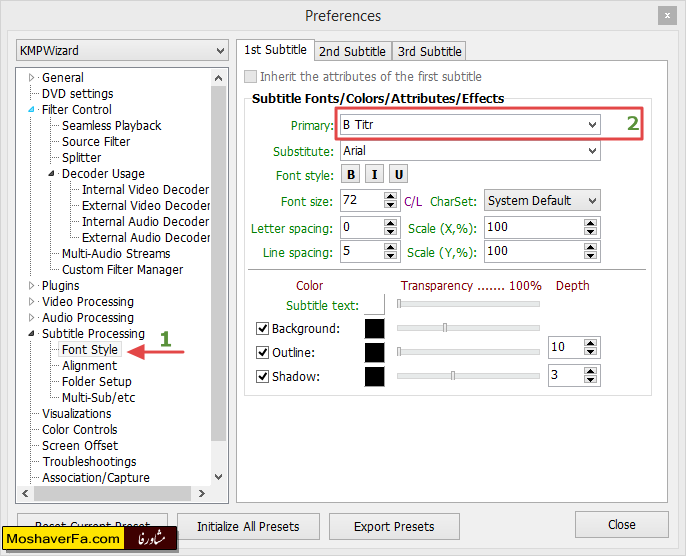 اگر زیرنویس های فارسی در هنگام پخش به شکل علامتهای عجیب و فونت ناخوانا نمایش داده میشود, این آموزش مشکل شما را برطرف خواهد نمود روش اول: (دائمی) برای حل این مشکل در ویندوزهای 7 و 8 به مسیر زیر رفته: Start -> Control Panel -> Region -> Administrative -> Change System Local آن را به Persian تغییر داده سپس کامپیوتر را Restart کنید. برای اینکه در هنگام اجرای فیلم زیرنویس شما هم همزمان اجرا شود باید اسم زیرنویس با اسم فایل تصویری یکی باشد مثلاً: Green Mile [1999] HD.mkv Green Mile [1999] HD.srt در Windows XP مسیر به صورت زیر است: Start -> Control Panel -> Region and Language -> Advanced -> Change System Local آن را به Farsi تغییر داده کامپیوتر را Restart کنید. در ویندوز XP پیش از مرحله بالا، در تب Languages فعال بودن کادر مشخص شده در تصویر زیر را بررسی کنید و در صورت فعال نبودن تیک آن را زده و سپس دکمه Apply را بزنید و پیغام نمایش داده شده را تایید کنید (برای این مرحله نیاز به دیسک ویندوز یا وجود فایل های نصبی ویندوز در کامپیوتر خود دارید). سپس کادر زیر نمایش داده میشود که در این مرحله برای کپی فایلها میباید دیسک ویندوز را در درایو کامپیوتر قرار دهید ------------------------------------------------------------ در برنامه های پخش کننده از فونت هایی استفاده نمایید که قادر به نمایش حروف فارسی هستند مانند Tahoma یا Segoe UI جهت تغییر دادن فونت ابتدا به بخش تنظیمات برنامه رفته, سپس طبق تصاویر زیر فونت نمایش زیرنویس را تغییر دهید. KMPlayer برای رفتن به بخش تنظیمات روی پنجره برنامه راست کلیک کرده و سپس از منوی option گزینه preferences را کلیک و یا از کلید کمکی F2 استفاده کنید PotPlayer برای رفتن به بخش تنظیمات روی پنجره برنامه راست کلیک کرده و گزینه preferences را کلیک و یا از کلید کمکی F5 استفاده کنید روش دوم: زیرنویس را با Notepad باز کرده و سپس از روی گزینه ی File گزینه ی …Save as را انتخاب کنید و دوباره زیرنویس را با پسوند srt. ولی این مرتبه در گزینه ی Encoding بجای گزینه ANSI گزینه UTF-8 یا Unicode را انتخاب کنید. روش سوم: در نرم افزار Kmplayer به مسیر زیر بروید: Option -> Preferences -> Subtitle Processing -> Font Style و در قسمت Charset گزینه Arabic را انتخاب کنید. در مجموع روش اول راه حل دائمی برای مشکل است، ولی در صورت مشکلی می توانید از روشهای دوم و سوم استفاده کنید. تلویزیون ها و دستگاه های پخش کننده با استفاده از روش دوم آموزش، انکدینگ زیرنویس را بین Unicode - ANSI و UTF-8 تغییر داده سپس فایل زیرنویس را همنام با فیلم و در کنار آن قرار داده و تست کنید که تلویزیون یا دستگاه های پخش کننده تان با کدام انکدینگ سازگاری دارد. لازم به ذکر است برخی دستگاه ها از زیرنویس های فارسی پشتیبانی نمیکنند. سیستم عامل آندروید در دستگاه هایی با سیستم عامل آندروید میتوانید از برنامه MX Player جهت پخش استفاده کنید. و در صورت مشکل در نمایش زیرنویس فارسی به قسمت تنظیمات برنامه رفته و در بخش Subtitle گزینه Character Encoding را بروی Arabic cp1256 و یا Auto Detect قرار دهید. همچنین برنامه های زیر نیز قابلیت تغییر انکدینگ زیرنویس را دارا میباشند Change Encoding Subtitle Editor Free Easy Subtitles
