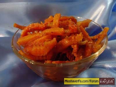 مواد لازم: هویج خلال شده 2 پیمانه رب گوجه 1 قاشق غذاخوری سیر رنده شده 2 یا 3 حبه جوهر لیمو 1 تا 5/1 قاشق غذاخوری فلفل سبز تند خورد شده درشت 2 تا 3 عدد نمک نصف قاشق غذاخوری روغن مایع به اندازه لازم * نکته روغن نباید کم باشد چون این ترشی یک نوع ترشی روغن دار است ) طرز تهیه: روغن مایع را در ماهیتابه ریخته هویج را اضا فه میکنیم کمی تفت میدهیم و بقیه مواد را اضافه میکنیم در ظرف را میکذاریم با حرارت ملایم که هویج نرم شود . روغن این ترشی باید زیاد باشد . این ترشی را میتوان تا 3 4 روز در یخچال نگهداری کرد. مواد لازم تقریبی میباشد میتوانید با چشیدن جوهر نمک و نمک ترشی را به دلخواه تغییر دهید . این ترشی بسیار خوشمزه می باشد پیشنهاد میکنم حتما درست کنید در ضمن طرز تهیه آن هم بسیار آسان و برای میز مهمانی هم مناسب است.