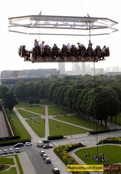 رستوران معلق در بلژیک که از میهمانش در فاصله 50 متری زمین پذیرایی می کند. میز غذا خوری این رستوران با کمک جرثقیل در هوا معلق نگه داشته می شود.