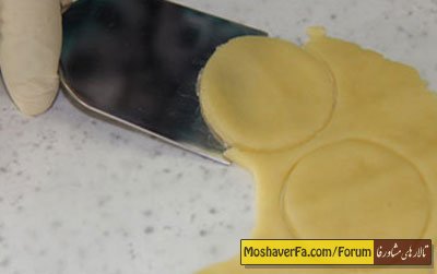 این شیرینی های کوچک بسیار مناسب برای پذیرایی در روزهای عید می باشند. مواد لازم: آرد 90-100 گرم کره 50 گرم پودر قند 30 گرم زرده تخم مرغ 1 عدد نمک یک پنس وانیل نصف ق م رنگ خوراکی مقداری ( یک پیمانه آرد = 125 گرم ) ( یک پیمانه پودر قند = 125 گرم ) مواد لازم برای مغزی شیرینی : کره 50 گرم شکلات تخته ای قهوه ای 100 گرم گردو 50 گرم طرز تهیه : آرد - نمک - وانیل رو با هم مخلوط کرده و کره رو که بصورت مکعب های کوچکی برش زدیم با نوک انگشت با آرد مخلوط می کنیم تا کاملا جذب آرد بشه . بعد زرده و پودر قند رو می افزاییم . خمیر شیرینی رو مخلوط می کنیم، اگه شل بود یه مقدار دیگه آرد به اون اضافه می کنیم ( اگه خمیر باز هم شل بود دیگه آرد اضافه نکنید و خمیر رو در یخچال استراحت بدین ) . نکته خیلی مهم : این خمیر رو نباید خیلی ورز داد چون سفت می شه . سپس خمیر شیرینی رو با وردنه باز کرده و با قالب گرد به قطر حدود 5 سانت اونو قالب می زنیم . برای مغزی این شیرینی ؛ ابتدا شکلات و کره رو روی حرارت کم قرار می دیم و به آرامی هم می زنیم تا شکلات و کره آب بشه. بعد گردوی خرد شده ریخته و مخلوط می کنیم . ( مقدار گردو رو با توجه به ذائقه خودتون می تونید کمتر یا بیشتر کنید ) به اندازه فندق از این مواد برداشته و داخل خمیر قرار می دیم. نکته : درصورتیکه مغزی به اندازه کافی سفت نیست و نمی شه گردش کرد می تونید کمی در یخچال قرار بدین تا سفت بشه. سپس شیرینی رو به شکل زیر اونو می بندیم . یه مقدار از خمیرمون رو با رنگ نارنجی یا قرمز یا رنگ مورد نظر خودتون ،رنگ کرده و بعد قالب می زنیم . سپس گل مورد نظر رو روی شیرینی مون قرار می دیم . بعد روش مروارید نقره ای می ذاریم. نکته : بجای مروارید می تونید از رویال آیسینگ هم استفاده کنید (البته بعد از پخت ) . اگه از مكروفر استفاده مي كنيد : ابتدا با دستور کانوکشن ۲۲۰درجه سانتیگراد دستگاه رو گرم کنید ،بعد دوباره کانوکشن ۲۲۰درجه سانتیگراد و زمان 15 دقيقه .سینی رو روی سه پایه کوتاه قرار دهید . اگه از فر استفاده مي كنيد : فر رو از قبل گرم كنيد بعد۱۸۰ درجه سانتیگراد بمدت 15 دقيقه نکته : مدت زمان پخت شیرینی به فر شما بستگی داره ،پس هروقت زیر شیرینی ها کمی طلایی شد یعنی شیرینی آماده هست .