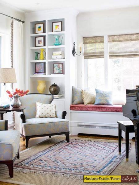 فضایی برای مهمانیهای رسمیتان بسازید یک اتاق بی رنگ و رو را با بکارگیری تعدادی ملزومات، بیارایید. برای ساختن یک فضای مصنوعی اما باروح، به دنبال لوازمی دارای سبک رسمی، مثل مجسمههای دیواری با طرح اشعهای باشید. مبلمانی ساده برای اتاق پذیراییتان انتخاب کرده و با انداختن قالیچهی خوشطرح بر کف اتاق، هر چه بیشتر به مبلمانتان جلوه دهید. استفاده از تعدادی لوازم تزئینی به رنگ صورتی روشن، در عین حال که به سبک رسمی لوازم دکوراسیون لطمه نمیزند، نیاز شما به حضور مقداری رنگ در فضای اتاق را نیز رفع میکند. یک طراحی اصولی هنگام شروع دکوراسیون اتاق پذیرایی، لوازم اصلی و اساسی اتاق را مد نظر داشته باشید. مبلمانی تطبیقپذیر و بیرنگ خریده، سپس آنگونه که دوست دارید به آنها جلوه دهید. در تصویر، یک قالی بزرگ آسیایی و رگههایی لطیف از رنگ آبی، این اتاق بیرنگ و خنثی را به نشیمنگاهی برای مهمانیهای رسمی تبدیل کردهاند. سایه روشنهای کلاسیک این صندلیهای دستهدار و مبل راحتی، هر نوع سلیقه و تغییرات دکوراسیونی را تاب خواهند آورد! دکوراسیونی با آرایش عالی یک سبک چیدمان منحصر به فرد میتواند با مهارت تمام، اثاثیهی اتاق را نظم و ترتیب دهد. برای یک فضای باریک و محدود، سعی کنید یک نیمکت مبلی راحتی و دراز را پشت به دیوار، قرار داده و در کنارههای راست و چپ آن تعدادی نشمینگاه و صندلی زیبا، جای دهید. لوازم جانبی موجود در اتاق، ساده باشند و با گذاشتن میزهای مبل کوچک در هر دو طرف نیمکت مبلی دراز، تناسب و تقارن لازم را در فضای اتاق ایجاد کنید. توهم بینایی! با انتخاب صحیح اثاثیه، مانع از این شوید که اتاق پذیرایی کوچکتان، تنگ و محصور به نظر بیاید. صندلیهایی با پایههای بلند و در معرض دید، به همراه میزهایی با ساختار باز و به رنگ قهوهای روشن، باعث میشوند هر فضای کوچکی، بزرگتر به نظر آید! لوازم جانبی اتاق باید ساده باشند تا ظرافت موجود در دکوراسیون اثاثیه را بر هم نزنند. الگویی برای یک دکور تمام عیار به دیوارهایی بیرنگ اتاق پذیراییتان که همانند یک بوم نقاشیاند، طرح و نقش و تاروپود بیافزایید. این اتاق پذیرایی با صندلیهای قدیمی اما جذاب و بالشهایی که در گوشه کنار اتاق جای گرفتهاند، فضایی با روح پیدا کرده و یک قالیچهی تزئینی با رنگهای متضاد، طرح و نقش مورد نیاز این دکوراسیون را تکمیل میکند. زیبایی تصنعی یک فضای رسمی با استفاده از دیوارهایی به رنگ تیره و سبکی با قالب سفید درخشان، بسازید. در این اتاق پذیرایی، سقف طاقدار به زیبایی، خطوط بکار رفته در طراحی طاقچهی بالای شومینه را انعکاس میدهد و بصورت تصنعی فضایی با روح میسازد. اثاثیهی سنتی با رگههایی از طرحهای کلاسیک، به طرزی عالی با فضای این اتاق پذیرایی شیک، ترکیب میشوند. پناهگاهی برای کودکتان! حتی کوچکترین اعضای خانوادهتان به مکانی برای استراحت و خستگی درکردن، نیاز دارند. با استفاده از پارچههایی با طرح برجسته و لوازم جانبی به رنگهای روشن و درخشان، با دیوارهای بیرنگ مقابله کنید! با جای دادن سبدهایی برای کتابها و اسباببازیهای کودک در اتاق، هر چه بهتر و آسانتر به این پناهگاه سر و سامان دهید! دکوراسیونی تماما گیرا و چشمگیر رنگهای صورتی و آبی دیگر تنها در شیرخوارگاهها استفاده نمیشوند! ترکیبی از رنگهای صورتی و آبی بههمراه رنگ قهوهای فاخر و باشکوه و نیز لوازم چوبی تیره رنگ، جلوهای بسیار شیک به فضای این اتاق پذیرایی بخشیدهاند. بالشهایی با طرح جذاب پولکایی نقطه نقطه و روکشهای صندلی گلدار، حس جوانی و نشاط مورد نیاز دکوراسیون را تامین میکنند. طرحی ساده و روشن دیوارهای نازک سفید و اثاثیهی مدرن، این اتاق پذیرایی به سبک بودایی را به زیبایی شکل میدهند. اثاثیهی کمارتفاع با طرحهای ساده، جلوهای از سادگی به دکوراسیون میدهند. تزئیناتی به رنگهای نارنجی و سبز درخشان، فضای اتاق پذیرایی را موجدار و روشن میکنند. یک سبک کلاسیک اغوا کننده این اتاق پذیرایی به دلیل آنکه لوازم مدرن راحتی را به سوی سبک سنتی سوق 