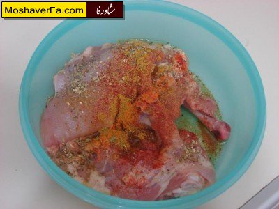 این خوراک از ران مرغ درست می شود و به شکل سوخاری در فر درست می شود و طعم لذیذ و خوش عطری دارد که اکنون به تصاویر نگاه کنید و یاد بگیرید این خوراک به دلیل سوخاری بودن طرفداران زیادی دارد مواد لازم: مرغ 3 تکه تخم مرغ 1 عدد آرد سوخاری نصف لیوان روغن زیتون 4 قاشق پاپریکا . فلفل سیاه کاکوتی- زیره طرز تهیه : ابتدا پوست های ران مرغ را در آورده شسته و می گذاریم کاملا آبش برود سپس مرغ ها را در یک تابه بزرگ چیده رویس روغن زیتون, نمک و آویشن , پاپریکا و زیره می ریزیم خوب به این مواد آغشته میکنیم یکی دو ساعت در یخچال قرار می دهیم . سپس در یک ظرف تخم مرغ را خوب مخلوط کرده در یک ظرف دیگر آرد سوخاری ریخته مرغ ها را اول در تخم مرغ سپس در آرد سوخاری می غلطانیم در سینی فر کاغذ روغنی انداخته در فر 180 درجه از قبل گرم شده به مدت 20 دقیقه قرار می دهیم
