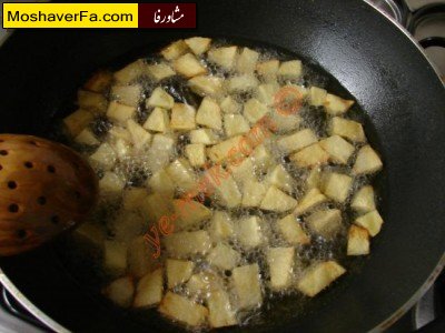 اگر می خواهید غذاهای متفاوت و مدرنی با جگر درست کنید آموزش تصویری آن برایتان آورده شده است با کلیک بر ادامه این آموزش را ببینید و یاد بگیرید مواد لازم: جگر 300 گرم خرد شده پیاز کوچک 16 عدد سیب زمینی متوسط 1 عدد جعفری یک دسته کره نصف قاشق روغن زیتون , نمک, زیره, اویشن و فلفل سیاه طرز تهیه : جگر را می شوئیم و آبش را می گیریم در یک قابلمه کره را ریخته و مقداری روغن زیتون می ریزیم و جگر خرد شده را ریخته و تفت می دهیم و 2-3 دقیقه تفت می دهیم و پیاز های کوچک تفت داده شده نمک و ادویه جات را به جگر اضافه می کنیم و در حرارت تند 5 دقیقه تفت می دهیم درب قابلمه را گذاشته در حرارت کم 15 دقیقه تفت می دهیم در آخر پخت جعفری ریز خرد شده ریخته و با قاشق ملایم هم میزنیم . پوست سیب زمینی ها را گرفته و مکعبی خرد می کنیم در روغن داغ شده سرخ می کنیم . مخلوط جگر را در ظرف کشیده و اطراف سیب زمینی سرخ شده می ریزیم