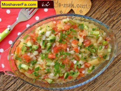 سالاد چوپان یکی از سالاد های معروف ترکیه است که ما در این بخش از نوع بادمجان کبابی را آموزش می دهیم مواد لازم: کنسرو بادمجان کبابی 6 قاشق( می توانید خودتان هم در منزل درست کنید) گوجه فرنگی بزرگ 1 عدد خیار متوسط 1 عدد فلفل سبز 2 عدد جعفری مقداری پیاز کوچک 1 عدد روغن زیتون 2-3 قاشق ابلیمو نمک طرز تهیه : گوجه فرنگی, خیار,پیاز و فلفل سبز را مکعبی خرد می کنیم در یک ظرف سالاد با اندازه متوسط پیاز و فلفل و گوجه فرنگی و خیار را می ریزیم رویش بادمجان کبابی را ریخته رویش روغن زیتون , نمک و آب لیموی تازه می ریزیم و خوب مخلوط می کنیم رویش جعفری ریز خردشده پاشیده و سرو میکنیم