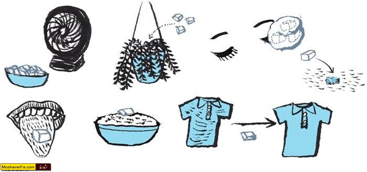 جالب ترین و کارآمدترین استفاده ها از تیکه های یخ که بسیار به صرفه و مناسب هستند را برایتان در این مطلب آورده ایم این مطلب موارد استفاده غیرمعمول یخ را برای شما توضیح می دهد: • آبیاری گیاهان آویز اگر مجبور به استفاده از صندلی برای آبیاری گل های آویز هستید، تکه های یخ مشکل را برطرف می کنند. کافیست چند تکه یخ داخل گلدان بیندازید تا با آب شدن، آب موردنیاز گیاه بدون ریزش ناگهانی از ته گلدان فراهم شود. از این روش برای درخت کریسمس که استفاده از آبپاش برای آبیاری آن سخت است، استفاده کنید. • از بین بردن جای پایه میز و صندلی از روی فرش در صورتی که با تغییر جای مبلمان، پایه های آن در اثر سنگینی روی فرش جا انداخته اند، از یخ استفاده کنید. بگذارید یک تکه یخ روی قسمت موردنظر آب شود. با کشیدن مسواک پرزها به جای خود برمی گردند. • برطرف کردن چروک لباس در صورتی که لباس شما بیش از حد چروک شده است و وقت کافی برای شستشوی مجدد آن ندارید، قبل از اتو زدن یک تکه یخ داخل پارچه ای نرم بگذارید و روی لباس بمالید. • جلوگیری از تاول زدن اگر هنگامی که جایی از بدن تان سوخت، فورا تکه ای یخ روی قسمت سوخته بدن قرار دهید، مانع از تاول زدن آن می شود. • گرفتن روغن اضافی غذا در صورتی که سوپ یا خورشت شما بیش از حد چرب شده است، راه حل سریعی برای آن وجود دارد. داخل یک ملاقه فلزی مقداری یخ بریزید و ته آن را روی سوپ قرار دهید. چربی ها دور ملاقه جمع می شوند. • گرم کردن برنج اگر برنج شما هنگام گرم کردن در مایکروفر خشک می شود، یک تکه یخ بالای آن قرار دهید تا با آب شدن رطوبت لازم برای برنج فراهم شود. • کندن آدامس از روی لباس زمانی که متوجه چسبیدن آدامس به لباس خود شدید، کافیست با خونسردی یک تکه یخ روی آن بمالید و با استفاده از یک قاشق آدامس را از سطح لباس تمیز کنید. • از بین بردن مزه دارو مزه دارو هر چه باشد، بچه ها از خوردن آن طفره می روند. با دادن یک قطعه یخ قبل از خوردن دارو، غدد چشایی موقتا بی حس شده، بدون شیرین کننده ها دارو را با موفقیت به کودک تان بدهید. • درآوردن ذرات از دست کودکان قبل از استفاده از سوزن استریل برای درآوردن ذرات فرو رفته در دست کودک، جای موردنظر را با یک قطعه یخ ماساژ دهید. این کار باعث می شود درآوردن ذره بدون فریادهای او و سریع تر و بدون درد انجام شود. • خنک کردن آب برای حیوانات خانگی اگر در خانه خرگوش، یا هر نوع حیوان خانگی نگه داری می کنید، از چند قطعه یخ برای خنک شدن ظرف آب آنها استفاده کنید. • باز کردن سینک ظرفشویی در صورتی که به دلیل تجمع چربی، آب به خوبی از سینک رد نمی شود، تکه های یخ کارسازند. با انداختن چند یخ داخل سینک، چربی ها به آنها خواهند چسبید و گرفتگی برطرف و راه آب باز می شود. • یکدست شدن سس اگر می خواهید سس سالادتان به خوبی سس های بیرون باشد، تمام محتویات سس را داخل شیشه دردار بریزید و یک تکه یخ به آن اضافه کنید. در شیشه را ببندید و خوب تکان دهید. یخ را درآورید و از خوردن سسی یکدست لذت ببرید. • جلوگیری از بریدن سس اگر هنگام ترکیب کره، تخم مرغ و آب لیمو، سس حالت بریده بریده پیدا کرد، نگران نباشید. کافیست یک تکه یخ داخل تابه بیندازید و هم بزنید تا سس به حالت اول برگردد و روان شود. • جلوگیری از چسبندگی بتونه هنگام بتونه کردن دور وان، بتونه به دلیل چسبندگی به انگشتان شما می چسبد. نتیجه کار به خصوص اگر بی تجربه باشید، جالب نخواهد بود. با کشیدن یخ روی خط بتونه مشکل را حل کنید. یخ آن را به صورت یکنواخت درآورده ضمن آن که بتونه هرگز به آن نمی چسبد.