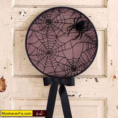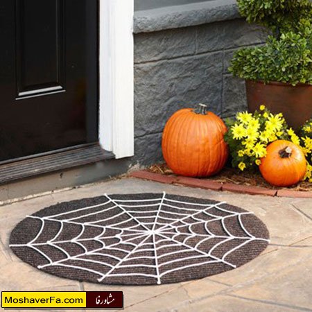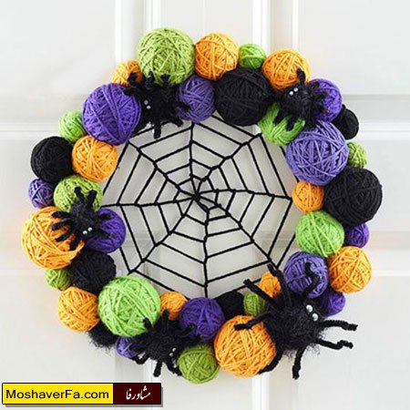 از این ایده های جالب کمک بگیرید و ورودی خانه تان را ترسناک و جذاب کنید. شیشه های مربا و ترشی را که دیگر استفاده نمی کنید دور نریزید. با رنگهای مختلف کل شیشه را رنگ کنید و با شابلون روی آنها تصاویر ترسناک بکشید. سپس آنها را روی پله های ورودی خانه تان بگذارید. اسفنج ها کوچک را به شکل توپ ببرید. روی آن ها پارچه توری مانند سفید بکشید. زیر دایره را جمع کنید و با نخ کلفت گره بزنید که مانند کله روح شود. سپس با ماژیک مشکی روی صورت آن دو چشم مشکی بکشید. این روح های کوچولو را بالای ورودی خانه تان نصب کنید. با مقواهای مشکی کلاغ هایی درست کنید و روی درب ورودی حیاط تان بچسبانید. برای تزئین بیشتر کنار درب ورودی از کدوهای سفید زنگ استفاده کنید. با همان مقواهای مشکی موشهای بزرگ و کوچکی درست کنید و روی پله های ورودی خانه تان بگذارید. یک پادری گرد ساده را بردارید و با کامواهای سفید روی آن طرح تار عنکبوت را پیاده کنید. یک درکوب با تزئین روبان مشکی درست کنید و روی آن دو عدد موش عروسکی کوچک که به رنگ مشکی هستند قرار دهید. حدود 10 الی 15 عدد مار پلاستیکی مشکی خریداری کنید و آنها را زیر پادری تان بگذارید. یک حلقه چوبی بزرگ تهیه کنید. دور آن را با روبان مشکی بپوشانید. روی آن یک تکه پارچه توری مشکی بچسبانید و با ماژیک مشکی روی آن طرح تار عنکبوت را نقاشی کنید. یک عنکبوت عروسکی مشکی رنگ را روی آن بچسبانید. مانند حالت بالا یک حلقه چوبی بردارید و دور آن روبان مشکی بپیچید. با نخ کاموای مشکی شکل تار عنکبوت را درست کنید. گلوله های کوچک و بزرگ از رنگ های مختلف کاموا را روی حلقه بچسبانید و در انتها عنکبوت های بافتنی مشکی را روی آنها بچسبانید. برای درست کردن عنکبوت های بافتنی یک گلوله مشکی را بردارید . برای درست کردن دست و پای عنکبوت ها از کامواهای کلفت تر استفاده کرده و آن ها را به بدنه بچسبانید. برای چشم هایشان هم از مغازه های فروشنده هنرهای دستی چشمهای مخصوص عروسکی تهیه کرده و بچسبانید. کدو تنبل هایی را که ساقه های بلندی دارند تهیه کنید. آنها را کاملا سفید کنید و با ماژیک مشکی روی آنها چشم و دهان را نقاشی کنید.