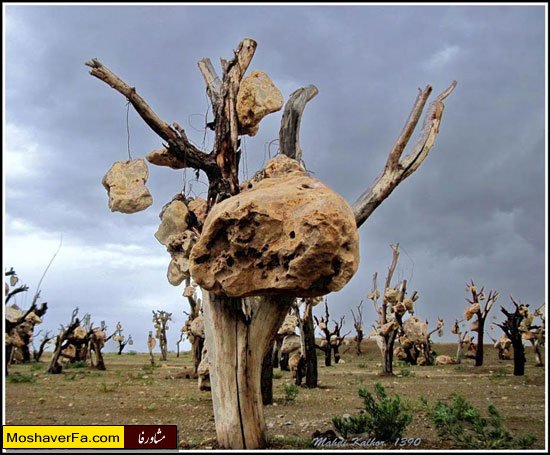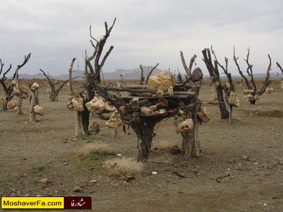 سایت تیشینه: حکایت باغی بزرگ که درختان چوبیش میوه هایی از سنگ داده اند و این روزها به سوژه عکاسان و گردشگران تبدیل شده است حکایتی شندینی است. در 40 کیلومتری جنوب شرقی سیرجان در جاده سیرجان - بافت دهستانی است به نام بلورد و روستایی میاندو آب نام قرار دارد که به دلیل وجود یک باغ عجیب شهیر شده است. باغی شش گوش با صدها درخت بارور اما این باغ با سیار باغها بسیار متفاوت است و نه نیاز به آب دارد و نه آفتاب اما سالهاست درختانش سربلند ایستاده اند و ایستادگیشان را مدیون پیر مردی کر و لال هستند که تک تک آنها را با دستانش و در سکوت و بهت روستائیان و گردشگران کاشت. حکایت یک باغ عجیب که درختانش میوه سنگی میدهند. درختان این باغ تشکیل شده اند از تنههای درختان خشکیده و سنگهایی که از شاخ و برگ درختان آویزان است. شایعات متفاوت از انگیزه باغبان باغ سنگی عده ای میگویند داستان این باغ از آنجا آغاز شد که درویش خان اسفندیاری که از زمین داران سیرجان محسوب میشد در سال 1340 پس از اجرای طرح اصلاحات ارضی میزان قابل توجهی از زمینهای خود را از دست داد و در نهایت به دلیل عدم آبیاری زمینهای بارورش که سالها برای آبادی آنها تلاش کرده بود جلوی چشمانش خشک شد. درویش خان که این ظلم را بار سنگینی بر دوش خود و خانواده اش میدید پریشان شد و در صحرای مجاور یکی از باغهایش که پس از اجرای طرح اصلاحات ارضی کاملا خشک شده بود چادر زد پس از آن اقدام به ایجاد این باغ کرد اما اینکه دلیل اصلی ایجاد این باغ چه بوده است حکایتهای مختلفی دارد اما به دلیل کر و لال بودن درویش خان هیچ گاه راز احداث این باغ مشخص نشده است. نکته عجیب اینکه در برخی موارد تنههای درختان خشک شده و سنگهای عظیمی که به آنها اویزان شده است آنقدر بزرگ است که مشخص نیست این مرد چگونه از پس احداث باغ سنگی برآمده است. در سال 1355 پرویز کیمیاوی بعد از بازدید از این باغ شگفت انگیز تصمیم گرفت که فیلمی از زندگی خان بسازد که در آن درویش خان و خانواده اش نقشهای اصلی را ایفا میکردند این فیلم توانست جایزههای بسیاری را در جشنوارههای داخلی و خارجی از جمله جشنواره خرس نقره ای فیلم برلین را کسب کند. در این فیلم نشان داده شده است که پس از خشک شدن باغهای درویش خان، وی در چادری نیمه شب درحال استراحت بوده که خواب باغی را میبیند از سنگ، پس از آنکه از خواب بیدار میشود به جستجوی سنگها میرود و در بستر رودخانه و کوه نزدیک به باغش سنگهای سوراخ شده ای را مییابد و آنها را با طی چندین کیلومتر راه به محل احداث باغ میآورد و از تنه درختان آویزان میکند. از خواب نما شدن تا اعتراض به خشک شدن باغها اما خانواده درویش خان چیز دیگری را میگویند، به گفته خانواده درویش خان به دلیل اینکه خان گنگ بوده و نمیتوانسته اعتراض خود را به از دست دادن زمینهایش بیان کند این باغ را به سبب نشان دادن اعتراض به ظلمی که بر وی رفته بنا کرده است. درویش خان که زندگی خود را از دست رفته میدیده است ابتدا تنه درختان باغ خشک شده اش را از خاک بیرون میآورد و بعد به محل احداث باغ منتقل میکند و در نهایت به گفته روستائیان گودالی به عمق یک متر حفر میکرده و تنه درخت را در آن استوار میکرده است. برای تهیه سیم برای اتصال سنگها به تنه درختان لاستیکهای فرسوده خودروها را جمع میکرده آتش میزده و بعد سیم درون آن را خارج میکرده است. راز سوراخ بودن سنگها اما در این میان چند نکته عجیب وجود دارد نخست اینکه تمام سنگهایی که به درختان متصل شده اند به طرز ماهرانه ای سوراخ شده اند در حالیکه هیچ دستگاهی برای سوراخ کردن سنگها وجود نداشته و به نظر میرسد سنگهایی که سوراخ شده اند به وسیله درویش خان از اطراف و به خصوص از کوه نزدیک به باغ جمع آوری میشده است. برخی از سنگها آنچنان بزرگ هستند که یک مرد تنومند به سادگی نمیتواند آنها را جمع آوری کند. دوم اینکه پس از مرگ درویش خان یکی از درختان فرو میریزد و برای سرپا کردن دوباره آن چندین مرد از روستای اطراف به زحمت توانستند درخت را استوار و سنگها را