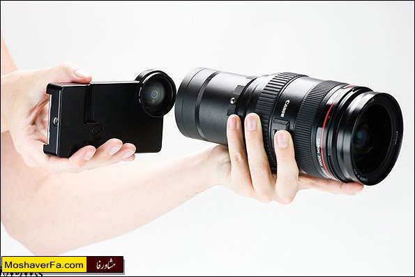در کنار برنامه های جانبی متعددی که برای افزودن جلوه های ویژه عکسهای ثبت شده توسط آی-فن وجود دارد، سخت افزارهای فراوانی نیز برای بهبود این تصاویر ساخته شده اند. جدید ترین نمونه این سخت افزارها پایه لنز SLR آی-فن است که توسط شرکتی به نام Photojojo تولید شده است. این پایه در واقع قابی برای آی-فن است که می تواند به عنوان مبدل لنز دوربین این گوشی به لنزهای F نیکن و لنزهای EF کانن به کار گرفته شود. این قاب آلومینیومی مستحکم می تواند امکان استفاده از انواع لنزها ( تله، واید، فیش آی، ماکرو) را برای کاربر فراهم آورد. البته نبودن آینه در دوربین آی-فن به این معنی است که تصاویری که با استفاده از لنزها به ثبت می رسند وارونه خواهند بود، اما در عوض می تواند عمق میدان و بزرگنمایی را به تصاویر آی-فن هدیه دهد. البته استفاده از این لنزها و محدودیتهایی از قبیل از دست رفتن درخشش عکسها نیز وجود دارد که با استفاده از نرم افزار مناسب قابل رفع است. بر اساس گزارش گیزمگ، شرکت تولید کننده این قاب زمان عرضه آن را در اواسط ماه آگوست و قیمت آن را ۲۴۹ دلار اعلام کرده است: کاربر آی-فن با استفاده از این قاب به راحتی می تواند لنز مورد نظرش را به دوربین وصل کند قاب آلومینیومی به اندازه ای مقاوم است که امکان نصب لنزهای متنوع را به وجود می آورد