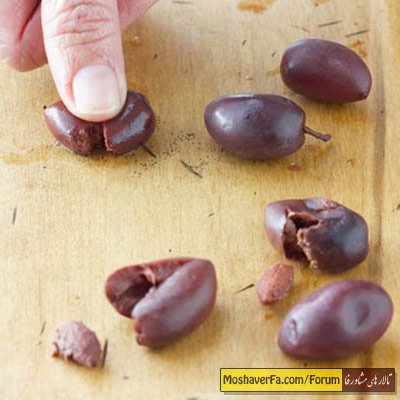 بیرون آوردن هسته آووکادو آووکادو رو با آب سرد شسته و خشک میکنیم. سپس بوسیله چاقو برشی عرضی میزنیم و تا رسیدن به هسته، چاقو رو تو میوه فرو میبریم. حالا میوه رو میچرخونیم و برش دیگه ای تو سمت مقابل میزنیم بطوریکه آووکادو به دو نیم تقسیم بشه. با دستمون دو تکه برش خورده رو جدا میکنیم و میبینیم که هسته وسط یکی از تکه ها باقی میمونه. برای بیرون آوردن هسته، با تیغه چاقو ضربه آرومی به هسته میزنیم. نیازی به فشار آوردن و ضربه محکم نیست چرا که هسته نرمتر از اون چیزی هست که به نظر میرسه و تیغه چاقو با ضربه مختصری وارد هسته میشه. حالا با حرکت دادن چاقو میتونیم به راحتی هسته رو خارج کنیم. بیرون آوردن هسته هلو و شلیل هلو رو با آب سرد شسته و خشک میکنیم. سپس با چاقو یه برش عرضی میزنیم و تا عمق میوه چاقو رو فرو میبریم تا به هسته برسه. حالا هلو رو برمیگردونیم و همین برش رو در سمت مقابل انجام میدیم تا هلو به دو تکه تقسیم بشه. چاقو رو کنار میذاریم و به آرامی بطوریکه فشار زیادی به دیواره میوه وارد نکنیم، دو تکه برش خورده رو از هم جدا میکنیم و هسته وسط یکی از تکه ها میمونه. هسته بعضی از هلوها یا شلیل ها به جداره داخلی میوه چسبیده و جدا کردن تکه های برش خورده رو کمی سخت میکنه. در چنین مواردی برشهای کوچیکتری میزنیم و اونها رو از هسته جدا میکنیم. در بسیاری موارد مخصوصا در مورد شلیل ها براحتی نمیشه هسته رو با دست از تکه های میوه جدا کرد. برای این منظور از چاقو استفاده میکنیم و هسته رو بیرون میاریم. بیرون آوردن هسته انبه برای بیرون آوردن هسته انبه، ابتدا باید به ظاهرش دقت کنیم. انبه یه سطح پهن و صاف داره که فرم هسته وسط انبه رو نشون میده و همینطور نشون میده که چطور میخواهیم انبه رو برش بزنیم. انبه رو با آب سرد میشوریم و خشک میکنیم. سپس بوسیله یه چاقوی تیز، دقیقا تا کنار هسته وسطش برش میزنیم (مانند عکس) و بعد همین برش رو در سمت مقابلش هم تکرار میکنیم. انبه به دو برش بزرگ تقسیم میشه و ما میتونیم براحتی هسته رو بیرون بیاریم. البته ممکنه کمی میوه از جداره داخلی به هسته چسبیده باشه که اون رو هم با چاقو جدا میکنیم. بیرون آوردن هسته خرما برای بیرون آوردن هست خرما، از ابتدا به انتهای خرما یه برش عرضی میزنیم. سپس بوسیله چاقو هسته رو خارج میکنیم. به همین راحتی با این روش میتونیم هسته همه خرماهامون رو بیرون بیاریم. چگونه هسته زیتون را خارج کنیم اگر زیتونتون کوچیک (حدودا به اندازه یک گیلاس) هست، میتونید از هسته گیر گیلاس استفاده کنید. برای بقیه زیتونها میتونید از روش زیر استفاده کنید. با من همراه باشید: زیتون ها رو روی سطحی تمیز و صاف، مثل تخته خرد کردن سبزیجات، قرار میدیم. هر زیتون رو با انگشت شست فشار میدیم تا کمی صاف شده و دیواره زیتون ترک برداره. اگر زیتونها جداره ضخیمی دارن که به هسته چسبیده، میتونیم با گوشت کوب ضربه آرومی به زیتون بزنیم تا ترک برداره. حالا با کمک انگشت شست و انگشت اشاره جداره ترک خورده زیتون رو باز میکنیم و هسته رو بیرون میاریم. اگر زیتون جداره ضخیمی داره که به راحتی باز نمیشه، میتونیم بوسیله چاقو، هسته رو از دیواره ترک خورده بیرون بیاریم.