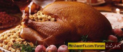 پخت یک بوقلمون کامل و بی عیب و نقص حتی برای بزرگترین سر آشپز ها هم کاری پر استرس است. در این مقاله راهکار ها و نکاتی برای پخت یک بوقلمون خوشمزه ارائه می گردد. امیدوارم با بکار گیری آنها در آشپزی خود موفق باشید. انتخاب بوقلمون استفاده از مواد با کیفیت آشپزی را ساده می کند. وقتی که بوقلمون را سفارش می دهید برای هر نفر نیم کیلو گرم در نظر بگیرید. همچنین برای کسانیکه خوراک بیشتری دارند می توانید دویست گرم اضافه تر در نظر بگیرید. البته اندازه یخچال و فر خود را هم در نظر بگیرید. لوازم مورد نیاز برای پخت بوقلمون بسته به روش پخت ابزار مورد نیاز شما متفاوت است اما در اینجا نکاتی ارائه می شود که دانستن آن خالی از لطف نیست. یک سینی فر بزرگ که بتوانید یک بوقلمون با اندازه مورد نظر خود را در آن جا دهید. سیخ مناسب برای اینکه پاهای بوقلمون را ثابت نگه دارید و ظاهر خوبی داشته باشد. فویل برای اینکه بوقلمون را دور دور آن بپیچید تا در فر رطوبت خود را حفظ کند. چرتکه برای مالیدن کره ذوب شده به بوقلمون صافی برای اینکه آب بوقلمون را صاف کنید. یک ست چاقوی خوب برای بریدن بوقلمون دماسنج گوشت رفتار مطمئن با بوقلمون! هر آنچه با بوقلمون تماس دارد باید تمیز باشد و چاقویی که استفاده می کنید نباید به خوراک دیگری آغشته شده باشد و مطمئن شوید دماسنج گوشت شما عدد درستی را نمایش می دهد. چاشنی بزنیم یا نه؟ استفاده از چاشنی می تواند یکی از برتری های پخت بوقلمون باشد. توصیه من این است که چاشنی و بوقلمون را جداگانه پخت نمایید سپس چاشنی را در 30 دقیقه پایانی پخت داخل شکم آن اضافه نمایید. نکاتی برای چاشنی زدن به ازای هر نیم کیلو بوقلمون در حدود یک فنجان چاشنی می توان در نظر گرفت. با اضافه کردن چاشنی زمان پخت افزایش می یابد 5 تا 7 دقیقه به ازای هر نیم کیلو گرم بوقلمون هیچگاه بوقلمون را زودتر از موعد چاشنی نزنید. اگر به بوقلمون خود آب نمک می زنید توصیه نمی شود چاشنی بزنید چون چاشنی نمک زیادی جذب می کند. اگر چاشنی نمی زنید می توانید مقداری گیاهان تازه که خیلی ریز نشده باشد به آن اضافه نمایید. با کرفس، پیاز و هویج داخل شکم آن را پر نمایید تا طعم بهتری به بوقلمون شما بدهید. همه چیز درباره آب نمک زدن آب نمک کمک می کند بوقلمون شما رطوبت بیشتری داشته باشد و با کمترین زحمت به آن طعم مناسب بدهید. برای خیساندن بوقلمون در آب نمک یک قابلمه بزرگ نیاز دارید که بوقلمون را داخل آن گذاشته و از آب نمک پر کنید سپس این قابلمه را در یخچال بگذارید به مدت دو ساعت بماند. بوقلمون شما باید کاملا در آب نمک غرق گردد. می توانید بوقلمون را چندین ساعت یا حتی از شب تا صبح در آب نمک بخیسانید. این کار معمولا برای پرنده ها و بوقلمون های کوچک قابل انجام است ولی برای بوقلمون های بیش از 10 کیلوگرم اینقدر قابلمه شما سنگین می شود که این کار غیر عملی به نظر می رسد. نسبت آب نمک هم به این صورت است که به ازای هر 4 لیتر آب یک فنجان نمک لازم است. گردن و جگر را از داخل شکم بوقلمون خارج کنید. سپس بوقلمون را در داخل آن بخوابانید تا خوب در محلول آب نمک غرق شود. اگر می خواهید از شب تا صبح بوقلمون را در آب نمک بخوابانید باید از نصف فنجان نمک بجای یک فنحان استفاده نمایید. اگر از نمک تصفیه شده استفاده می کنید بهتر است تا 30 درصد نمک بیشتری استفاده کنید چون این نمک چگالی کمتری دارد. وقتی که بوقلمون را در آب نمک می خوابانید ممکن است آب گوشت بوقلمون شما شور تر از ذائقه شما باشد بهمین دلیل بهتر است از نمک کم سدیم استفاده کنید. نکته های عمومی در پخت بوقلمون همیشه دل و جگر بوقلمون را قبل از چاشنی زدن و کباب کردن خارج کنید. بوقلمون را تازه از بازار بگیرید و بپزید اگر بوقلمون یخ زده از بازار تهیه کردید باید آنرا دو روز در یخچال بگذارید تا کاملا یخ آن باز شود هیچگاه بوقلمون یخ زده را در دمای اتاق قرار ندهید. بوقلمون را یک ساعت قبل از پخت از یخچال خارج نمایید. قبل از کبابی کردن بوقلمون با دست و دلبازی به آن کره بمالید تا هم 
