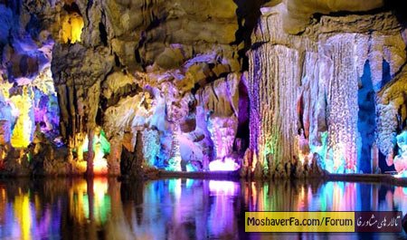 «رید فلوت» شگفت انگیزترین غار آهکی جهان (+عکس) شگفتانگیزترین غار آهکی جهان که با نام «کاخ هنرهای طبیعی» شناخته میشود و یکی از پربازدیدترین جاذبههای گردشگری چین است. غار رید فلوت (Reed Flute) در کشور چین زیباترین غار آهکی دنیاست. ستونهای زیبای این غار در طول میلیونها سال چکیدن آب از سقف این غار ایجاد شده اند. نورپردازی این غار سبب شده تا جلوههای بصری این غار بیش از پیش خود را جلوهگر کند. این غار از سنگ آهک طبیعی با نورپردازیهای رنگارنگ به وجود آمده است. غار رید فلوت در چین غار رید فلوت در چین غار باستانی رید فلوت با قدمت 180 میلیون سال یکی از جاذبههای گردشگری شهر گویلین در استان گوانگزی چین است و در طول 1200 سال گذشته یکی از پربازدیدترین مناطق گردشگری چین بوده است. این غار نام خود را از نوعی نی (که از آنها فلوت ملودیک ساخته میشود) و در خارج از غار رشد کرده گرفته است. غار رید فلوت در چین غار رید فلوت در چین غار رید فلوت از تعداد زیادی طاقدیس، ناودیس و ستونهای سنگی، پره سنگ و گل سنگ تشکیل شده که درخشان هستند و مانند چراغهای رنگارنگ زرق و برق خیره کننده ای را ایجاد کرده و اشکال عجیب و غریب و شگفت انگیزی را ایجاد کردهاند. غار رید فلوت در چین غار رید فلوت در چین غار رید فلوت در چین این غار که به نام "کاخ هنرهای طبیعی" شناخته میشود در شمال غرب چین واقع شده است. طبق افسانهها، نام رید فلوت از این باور نشأت می گیرد که دهانه غار می تواند نی را تبدیل به فلوت کند. غار رید فلوت در چین غار رید فلوت در چین غار رید فلوت در چین هر زمانی که به تماشای مناظر رویایی فوقالعاده استالاکتیتها، استالاگمیت ها، ستونهای سنگی، پردههای سنگی، پرندگان، گیاهان و حیوانات به شکل ها و رنگ های فانتزی بروید، غار رید فلوت می تواند روحتان را شیفته خود کند. غار رید فلوت در چین غار رید فلوت در چین رودخانه ای زیرزمینی به فضای بسیار زیبای این غار می افزاید. طول آن فقط ۲۴۰ متر است، ولی مناظر آن قطعاً ارزش تماشا را دارد. در این غار 70 سنگ نوشته نیز پیدا شده است که قدمت تاریخی این غار را توضیح میدهند.