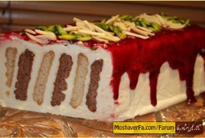مواد لازم : کره 150 گرم خامه 200 گرم پنیر خامه ای 200 گرم بیسکویت ساده و کاکائویی 30 عدد مارمالاد آلبالو و خلال پسته و بادام برای تزئین دو قاشق غذاخوری پودر شکر شش قاشق غذاخوری دسر بیسکویتی کره ای : یک قالب مستطیل به طول 26 سانتیمتر و به عرض و ارتفاع 6 سانتیمتر و همزن برقی، دویست گرم خامه پاستوریزه سفت (معادل 7 قاشق غذاخوری سرپر) دسر بیسکویتی کره ای بیسکویت ساده : پانزده عدد بیسکویت ساده و پانزده عدد بیسکویت کاکائویی (معادل صد و پنجاه گرم بیسکویت). دسر بیسکویتی کره ای بادام و پسته و مارمالاد آلبالو : شش قاشق غذاخوری پودر شکر (معادل 120 گرم). یک قاشق غذاخوری خلال پسته و بادام و دو قاشق غذاخوری مارمالاد آلبالو برای تزئین. دسر بیسکویتی کره ای دسر بیسکویتی کره ای : دویست گرم پنیر خامهای (معادل دو بسته صد گرمی پنیر خامهای). صد و پنجاه گرم کره طرز تهیه دسر بیسکویتی دو رنگ : دویست گرم (7 قاشق غذاخوری) خامه پاستوریزه سفت را دو ساعت در فریزر میگذاریم سپس آن را از فریزر درآورده و با سه قاشق غذاخوری پودر شکر مخلوط میکنیم. آن را با همزن برقی حدود 5 دقیقه با درجه تند هم میزنیم تا خامه فرم بگیرد. دویست گرم پنیر خامهای را با سه قاشق غذاخوری پودر شکر مخلوط کرده، دو الی سه دقیقه با همزن برقی هم میزنیم. صد و پنجاه گرم کره را میگذاریم نرم شود و بعد آن را اضافه کرده، هم میزنیم. سپس خامه فرم گرفته را اضافه کرده با یک قاشق هم میزنیم تا مایه کرهای دسر آماده شود. یک عدد کیسه فریزر را باز کرده، ته یک قالب مستطیل شکل به طول 26 سانتیمتر قرار میدهیم. کمی از مایه کرهای را ته قالب ریخته، روی آن را صاف میکنیم و بیسکویتهای ساده و کاکائویی را به دسر کرهای آغشته کرده، یکی در میان در قالب قرار میدهیم و بقیه دسر کرهای را در قالب ریخته تا پر شود. در نهایت پلاستیک را روی دسر برگردانده و آن را برای 5 الی 6 ساعت در فریزر قرار میدهیم تا دسر سفت شود. دسر بیسکویتی را از فریزر درآورده، بر می گردانیم و پلاستیک روی آن را جدا میکنیم. دو قاشق غذاخوری مارمالاد آلبالو روی آن ریخته، با خلال پسته و بادام آن را تزئین میکنیم. سپس با یک چاقوی تیز آن را برش می زنیم تا آماده پذیرایی شود. با این مقدار مواد لازم به اندازه یک دیس کوچک از « دسر بیسکویتی دو رنگ » خواهیم داشت.
