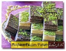 مواد لازم : کره نصف پیمانه پودر قند نصف پیمانه وانیل یک چهارم قاشق چایخوری پودر بیسکویت 1 پیمانه پودر بادام 1 پیمانه کاکائوی تخته ای 150 گرم پودر کاکائو 3 قاشق غذاخوری شیر 3 قاشق غذاخوری طرز تهیه : کره، پودر قند و وانیل را مخلوط کنید تا نرم و لطیف شود. پودر بیسکویت و پودر بادام را به آن اضافه کنید. کاکائوی تخته ای را به طریق بن ماری ذوب کنید، یعنی کاکائوی سفت را در یک ظرف هادی گرما (مثل پیرکس یا استیل و...) قرار دهید و ظرف را روی بخار آب (مثل بخار کتری) بگذارید تا کاکائو به تدریج ذوب شود. پودر کاکائو را داخل شیر گرم حل کنید و بعد از اینکه سرد شد، به همراه کاکائوی ذوب شده، به مواد بالا اضافه کنید. مواد را خوب مخلوط کنید. اگر مواد شل بود، کمی پودر بادام یا پودر بیسکویت به آن اضافه کنید و اگر مایه سفت بود، کمی شیر اضافه کنید. مقداری از این مواد را روی نان میکادو (نان ویفر) بریزید و آن را صاف کنید. سپس یک نان میکادوی دیگر روی آن بگذارید و مابقی مواد را ریخته و یک نان میکادوی دیگر روی آن قرار دهید. سپس با چاقو اره ای، میکادوها را برش دهید و در ظرف بچینید. می توانید کمی کاکائوی سیاه را ذوب کنید و روی میکادو ها بریزید. سپس برش دهید و کمی پودر پسته، روی برش ها بپاشید. نکته تغذیه ای : این شیرینی به دلیل داشتن بادام، دارای کلسیم، روی، ویتامین E و اسیدهای چرب ضروری است، ولی به دلیل داشتن قند و کره، باید در مصرف آن، حد اعتدال را رعایت نمود.