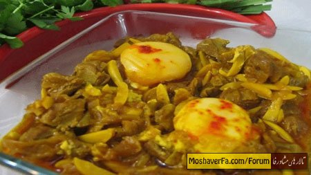 خورشتی متفاوت و بسیار خوشمزه آماده سازی : 15 دقیقه پخت : 45 دقیقه مواد لازم جهت تهیه پیچاق قیمه : گوشت گوسفندی خرد شده 400 گرم پیاز متوسط 4 عدد تخم مرغ 4 عدد خلال بادام 1/2 پیمانه زعفران پودر شده 1/2 قاشق چای خوری برگ مو 2 عدد آب 1 لیتر کره محلی 100 گرم آبغوره یا آب لیمو 1 قاشق غذا خوری ادویه خورشتی ( کاری، فلفل، زردچوبه، دارچین، هل ساییده شده و نمک ) به میزان لازم طرز تهیه پیچاق قیمه : پیازها را خلالی نموده و با کمی کره تفت میدهیم تا طلایی شود. در این مرحله گوشت و برگ بو را اضافه نموده و به تفت دادن ادامه میدهیم تا آب گوشت کشیده شود . مقداری ادویه اضافه کرده و دوباره تفت میدهیم سپس آب را افزوده و اجازه میدهیم گوشتها بپزند. خلال بادام را حدود دو ساعت در آب خیس کرده، سپس آبکش نموده و در کمی کره تفت میدهیم و به همراه زعفران به گوشتهای پخته شده اضافه میکنیم وقتی میزان آب خورش به اندازه دلخواه رسید تست طعم گرفته، نمک و ادویه آن را اندازه میکنیم. پس از آن تخممرغها را تک تک روی خورش میشکنیم و کمی زعفران روی زرده ها پاشیده و سپس در ظرف را میبندیم تا تخممرغها بسته شود ، در پایان در ظرف کشیده و با پیاز داغ سرو میکنیم. نکته ها : میتوان این خورش را با پلوی زعفرانی سرو کرد همچنین میتوانید تخممرغها را نیمرو کرده و موقع سرو روی خورش قرار دهید.