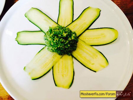 این برگر كدو و پنير براى چهار عدد برگر می باشد. برگر كدو و پنير غذایی سالم و لذیذ است. آماده سازی : 60 دقیقه پخت : 15 دقیقه مواد لازم برای 4 نفر : کدو بزرگ و قلمى ( برش هاى نوارى و نازك ) 3 عدد نخود سبز بلانچ شده 100 گرم ریحان 50 گرم پنیر فتا 100 گرم پنیر پارمزان رنده شده 100 گرم سیر 4 عدد پوست رنده شده لیمو 2 عدد پودر پسته 50 گرم تخم مرغ ( كمى با چنگال هم بزنيد و كنار بگذاريد ) 1 عدد * خرده هاى نان تازه به میزان لازم فلفل سیاه و نمک به میزان لازم * خرده هاى نان تازه ( يک عدد از نان هاى برگر رو با دستگاه غذا ساز همونطور كه تازه و نرمه خرد كنيد ) طرز تهیه : این برگر كدو و پنير براى چهار عدد برگر می باشد. اول نخود ها را داخل آب جوش به همراه كمى نمک ( يک قاشق چاى خورى ) بريزيد و بعد از دو دقيقه جوشيدن آنها را داخل يک آبكش بريزيد و بلافاصله داخل يک كاسه آب يخ بريزيد و بعد هم در يک سبد ريخته تا آب آن برود . همه مواد ميانى را با غذا ساز مخلوط و تركيب كنيد و تا كدوها را برش ميزنيد در يخچال قرار دهيد . بعد كدو را با پوست و به كمک يک پوست كن برش هاى نازک نوارى بدهيد . برش هاى كدو را اول شبيه به علامت جمع + روى هم قرار دهيد و بعد برش هاى ديگر را هم روى هم اريبى قرار دهيد ... حالا كدوها شبيه به يک گل چند پر شده مثل يک ستاره !!! مقدارى از مواد ميانى ، مركز كدو قرار دهيد . و بعد اولين كدو رو از زيربياريد رو و به نوبت تمام برش ها را ببنديد و در اين مرحله اگر وقت داريد در حدود يک ساعت برگر را داخل يخچال قرار دهيد . و بعد از اين زمان كمى روى برگر را با روغن زيتون برس بزنيد و داخل گريل و يا ماهيتابه سرخ كنيد ، با حرارت ملايم تا خوب مغز پخت شود . شايد در حدود 4 يا 5 دقيقه براى هر طرف لازم است . و بعد داخل نان برگر قرار دهيد و با كمى مايونز ، گوجه فرنگى ، پياز ... نوش جان كنيد.