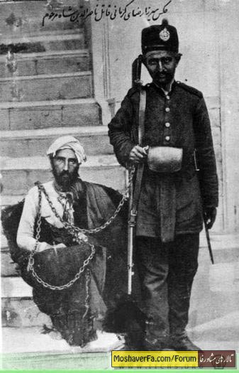 پدرِ رضاشاه؛ چهره ای که ناشناخته بود +عکس به عکس قاتل ناصرالدین شاه یعنی میرزا رضای کرمانی که در صحن شاه عبدالعظیم در شهر ری، ناصرالدین شاه را به گلوله بست، نگاه کنید. این عکس را همه دیده اند. میرزا رضا در حالی که زنجیر شده است، سر زنجیر را یک امنیه سیه چرده به دست دارد. این امنیه سیه چرده، پدر رضا شاه است که از بادکوبه به ایران مهاجرت کرد و مدتها جزو عساکر قزاق بود. اما بعدها به علت اعتیاد به مواد مخدر (که در آن زمان منع قانونی نداشت و استعمال آن آزاد بود) از سپاه قزاق اخراج شد و به خدمت کامران میرزا نایب السلطنه درآمد. (امنیه دولتی شد) در تمام دوران خدمت ۱۷ ساله رضا شاه و در طول ۳۷ سال سلطنت محمدرضا شاه هیچ تاریخ نگار و نویسندهای حق نداشت به این مطلب اشاره کند و هیچ عکسی از پدر رضا شاه به چاپ نرسید و هر وقت این عکس معروف به مناسبتهای تاریخی در نشریات چاپ میشد، فقط زیر آن مینوشتند: «میرزا رضا کرمانی» قاتل ناصرالدین شاه! و اشاره ای به نام امنیه ای که زنجیر میرزا رضا را در دست داشت نمیکردند.