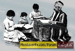 مكتبخانههای قدیم، پایههای مدارس امروزی هستند. اگرچه بین مكتب و مدرسه فاصله زیادی است و این فاصله ماهیت این دو را بكلی از هم تفكیك می كند، اما ریشههای «مدرسه»های امروزی به نحوی در مكتبخانههای از یاد رفته دیروز است و شناخت این ریشهها، شناخت شاخه بزرگی از فرهنگ گذشته ماست. مكتبخانه تا دو سه نسل پیش تنها كانون آموزش اجتماعی بود، از این رو مجموعهای از حال و هوای جامعه و آداب و سنتهای اجدادی ما در آن منعكس بود. سیری در رسوم و ارزشهای مكتبخانه از دیدگاههای بسیاری میتواند ثمربخش و هم پرجاذبه باشد. مكتبخانه در ازمنهای نه چندان دور، در ولایات و قصبات و حتی آبادی های دورافتاده دایر بود. این كانونهای عجیب و در عین حال جالب برای خود آئین ویژهای داشت و در بعضی مناطق مسجد نامیده می شد. مسجد یا مكتبخانه در هر مكانی میتوانست پیدایش یابد: در گوشه یك مسجد قدیمی و كوچك، یا حیاطی در جوار آن... و چه بسا در زیر چند سقف بی قواره كه قبلاً دكان یا حجره بود... مكتبخانه از وسایل و مقدورات تحصیلی، فقط فضای مسقفی داشت كه شاگردان را از گرما و سرما و باد و باران حفظ میكرد. چند حصیر یا نمد مندرس كف مكتب را میپوشانید و شاید ضربالمثل معروف «حصیری بود و ملانصیری» كه نوعی فقر و بیبرگی تمام عیار را توصیف میكند، برای توصیف مكتبخانههای قدیم بوجود آمده است. گرداننده یا مدیر مكتب را «آخوند» و یا «میرزا» میگفتند. او علاوه بر كار تدریس امور تحریری محل را از قبیل تنظیم قباله و اجارهنامه و اسناد ذمه و شرطی كه آنروز «حجت» نامیده میشد به عهده داشت. و بعضاً اجرای عقد ازدواج و طلاق و یا خواندن صیغه برادری و خواهری از كارهای او بشمار میرفت. او گاه با نوشتن تعویذی «تب نوبه» میبست و برای بیسوادان محل نامه مینوشت و یا نامههای رسیده ایشان را میخواند. «میرزا» دستیاری داشت كه او را «خلیفه» میگفتند و اجرائیات مكتب و احیاناً از قسمت تدریس و تعلیم خط بعهده او بود خلیفه مكتبدار را در وظایف متنوع و بیشمارش تا حدود توان یاری میداد. وسایل تحصیل برای تحصیل غالباً شهریهای پرداخت نمیشد، چرا كه گرفتن دستمزد برای تدریس از دید اعتقادی مردود بود. تنها مكتبداری كه سمت یا عنوان مذهبی نداشت از این قاعده مستثنی بود و ضرورتهای معاشی او از راه مكتبداری فراهم میشد. هركس كه قصد تحصیل داشت، میبایستی تشكچه بیاورد و جای مناسبی را در مكتب آماده نشستن كند. همین كه ساعت تعطیل میرسید، هركس تشكچه خود را برای امان ماندن از دستبرد احتمالی، همراه خود به خانه برمیگرداند. علاوه براین دانشآموز خورجین كوچكی نیز از نوع جاجیم میآورد و كتاب و قلمدان و غذای خود را در آن جای میداد كه در اصطلاح مكتب به «هیبه» معروف بود. این گویش یا اصطلاح، ناشناخته است و معلوم نیست كه چه ریشهای دارد و با چه تحولی به این صورت درآمده، بهر صورت «هیبه» را مخصوصاً برای استفاده شاگردان مكتبخانه میبافتند و گاهی از نوع زمخت آن نعلبندها و بناها هم برای حمل و نقل وسایل و ابزار كار استفاده میكردند. در فصل سرما سوخت مكتب را به نوبت یكی از شاگردان تأمین میكرد. گاهی كه توافقی نبود هركس منقل كوچكی مملو از آتش همراه میآورد و تا وقت درس از گرمای آن مدد میگرفت. آن روزها بیشتر بخاری دیواری متداول بود و در انتهای محل مكتب در منظر آنان فروغ و روشنائی میداد و مرتباً هیزم یا تپاله آن بوسیله خلیفه یا شاگردان بزرگ جابجا میشد و همین كه آتشی بدست میآمد، آنرا میكشیدند و در یك منقل فلزی یا سفالی پیش مكتبدار میگذاشتند. برای ورود به مكتب و ادامه یا شروع درس هیچ گونه قاعده سنی نبود. از یك كودك هفت ساله تا جوان سرآمد، میتوانست شاگرد مكتب باشد. همه اینها دورادور مكتب مینشستند و هریك به تنهایی با صدای بلند و آهنگ مخصوصی به تمرین و تكرار درس مشغول میشدند. اگر فردی ساكت بود و صدایش درنمیآمد، دلیل آن بود كه او تكاهل میكند و علاقه به درس و تحصیل ندارد و ناگهانی چوب تنبیه آخوند یا خلیفه سزایش را كف دستش میگذاشت. تصور این صحنه كه گروهی ناهمرنگ، 
